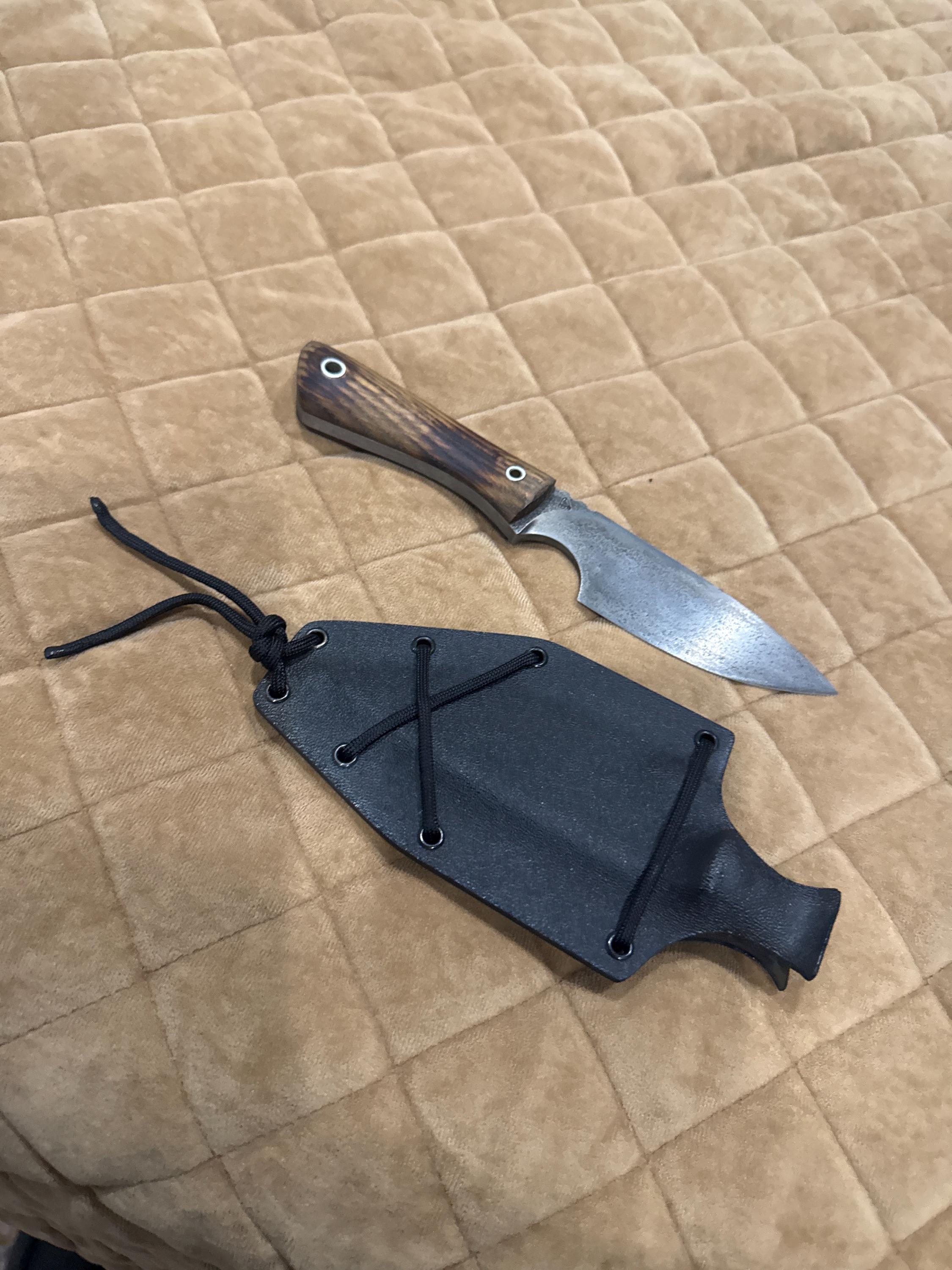I can make a kydex sheath for this knife upon request. I fully expect the user to field this knife and I make every attempt to ensure the quality of my work and materials are unquestionable.